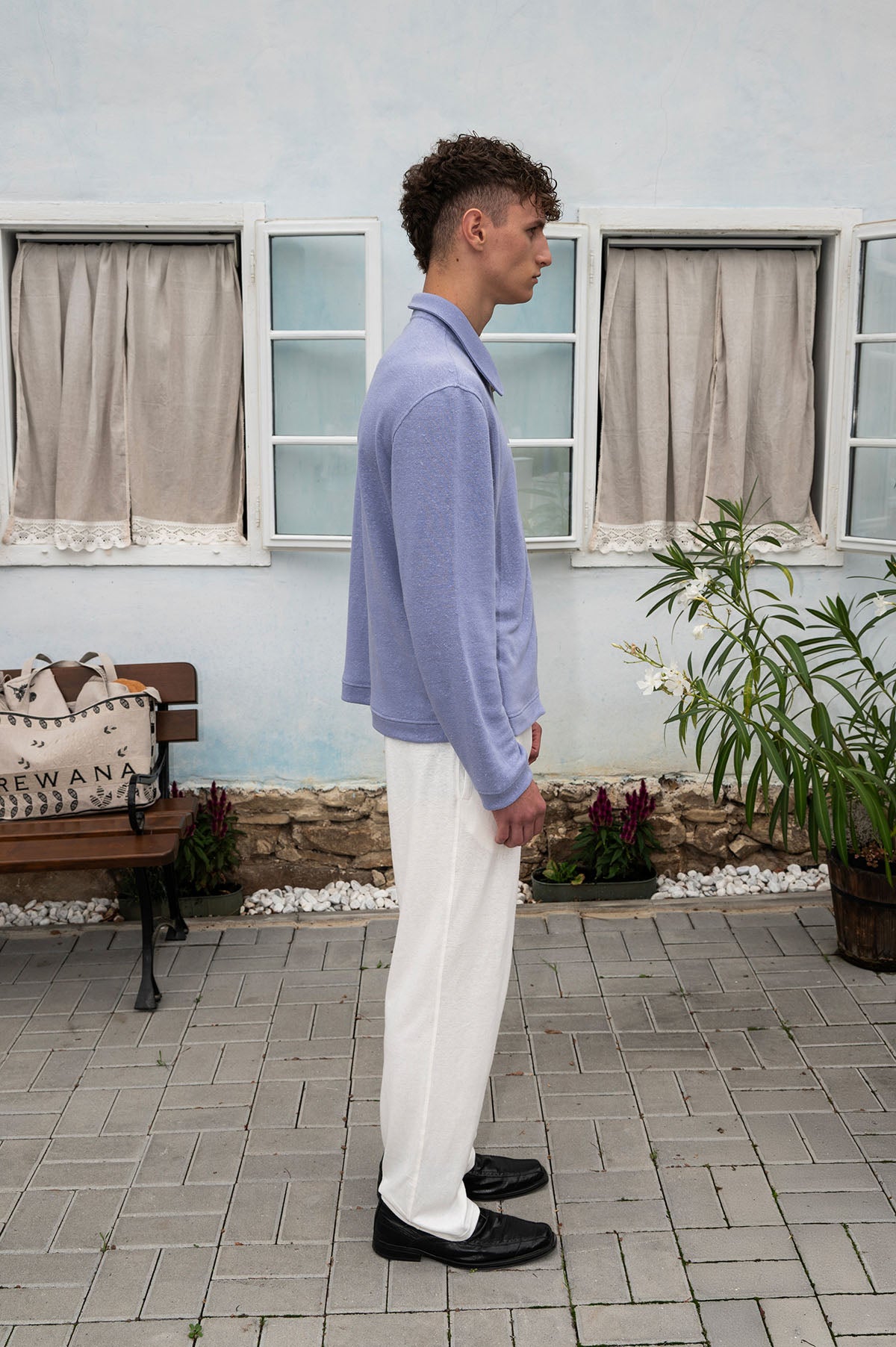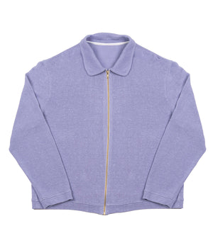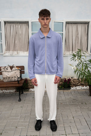 Levandulový zip-up top z mäkkého konopného úpletu. Elegantný golier a zlatý zips dotvárajú minimalistický dizajn, ktorý spája komfort, udržateľnosť a jemnú eleganciu pre moderný každodenný štýl.