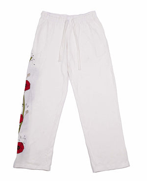 Tepláky z jemného úpletu z konopy a bio bavlny s originálnou výšivkou makov na boku. Mäkké, priedušné a pohodlné, spájajú udržateľný prístup s umeleckým detailom a ležérnym štýlom.